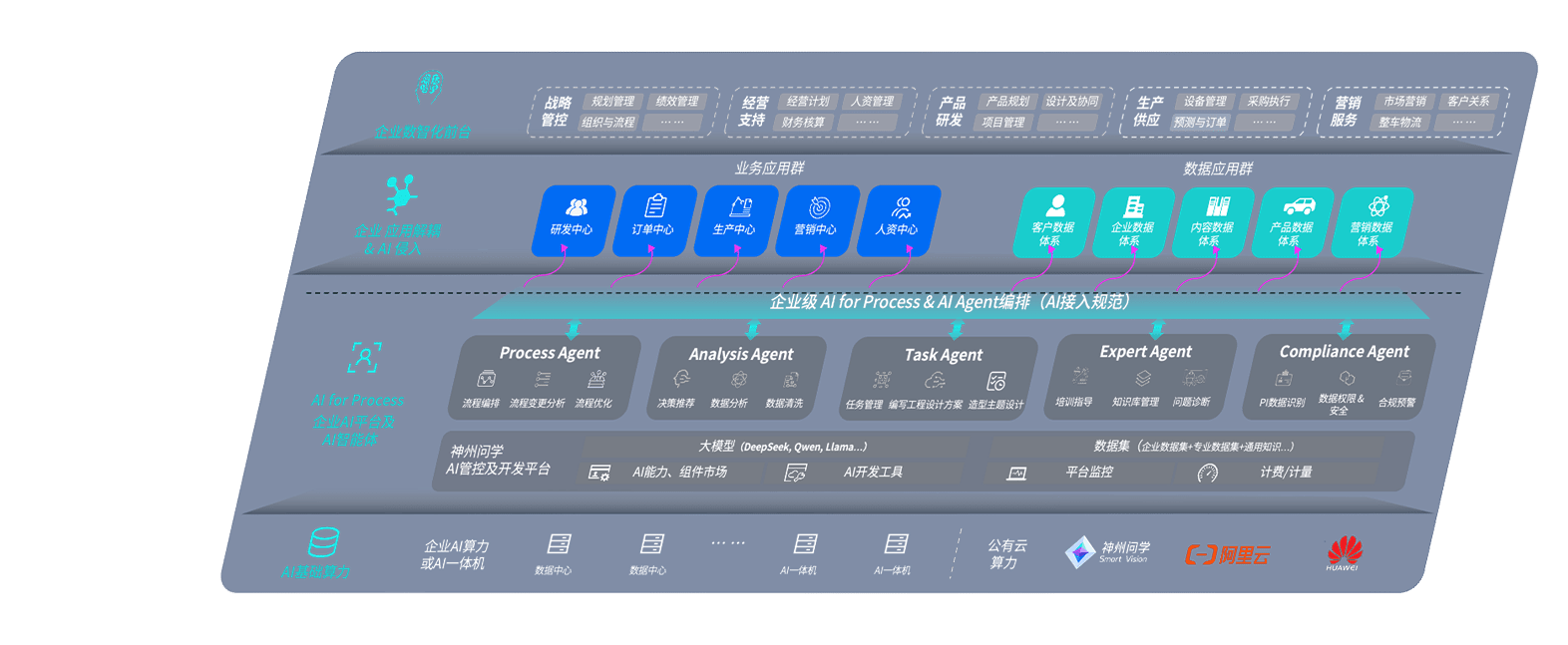 多彩网问学智车解决方案是一套基于AI技术的汽车行业智能化系统,,,覆盖从底层算力到顶层AI应用的全栈方案。。方案由算力层、、、模型层和应用层组成:算力层,,,,方案支持多种一体机配置,,,具备云端灵活部署、、多云适配以及动态优化计算资源的能力;模型层,,,,多彩网问学平台版提供了企业级AI应用一站式构建与管理平台,,,,支持基于后训练强化技术的汽车企业专属模型的训练、、、、评测和运营;应用层,,,多彩网问学DeepSeek版提供包括超级员工、、、、智能招采、、智能营销、、、、智能客服、、、、AI for BI等一系列解决方案,,,可助力汽车行业实现数字化转型,,,让管理更智能、、、响应更敏捷。。